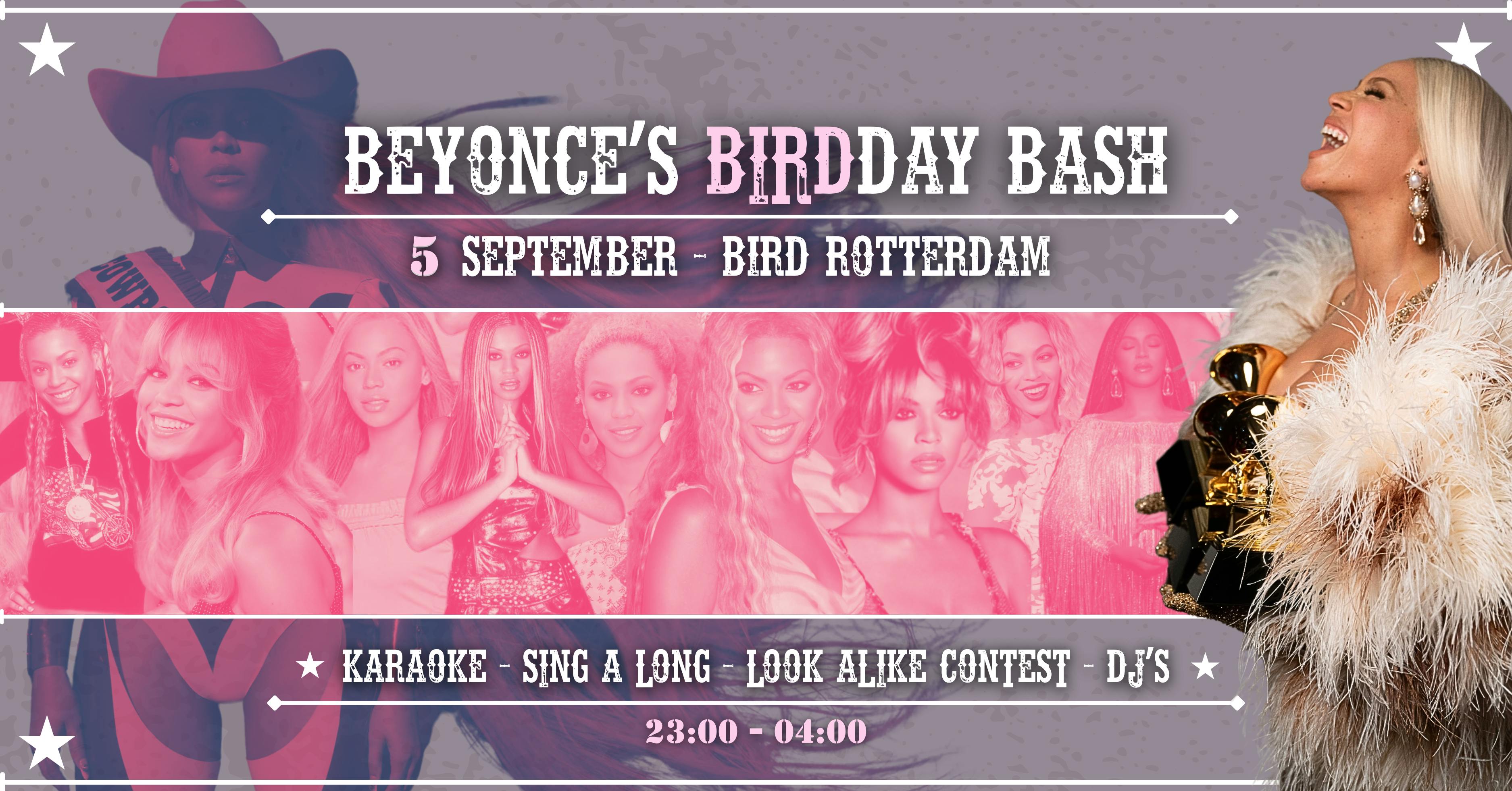 it's about that time again to celebrate the wonderfull succes of the Queen Bey. Since her Birthday is on the 4th of September we invite you all to celebrate this on Friday the 5th of September at club BIRD in Rotterdam.